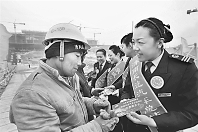 临近春运,济南长途汽车总站南区的工作人员来到济南西客站建设工地和山东省文化艺术中心工地,向参加建设的50名困难农民工送上“爱心车票”和“打折优惠卡”,并现场向数千名农民工进行售票咨询服务。在服务现场,车站还向家庭贫困的农民工及高校寒门学子赠送了200张免费乘车卡。同时,推出对大、中专院校学生购票乘车8.5折优惠和行李免费的服务举措,在学生出行较为集中的日期安排学子直通车直通校园,方便学生旅客乘车。杨维峰 摄