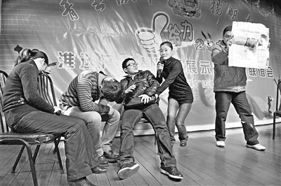 1月11日下午,安徽省淮北选煤厂的车间一线职工正在表演自编自导的安全小品。新的一年,该厂积极打造快乐安全的理念,组织职工根据身边的安全事件自编自演小品,使职工们在笑声中深思,增强安全意识。