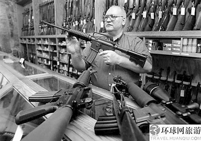 在美国,售枪广告随处可见,公民交付35美元登记费,就可取得为期三年的持枪执照。美国有近17万家枪械专卖店,此外在运动品商店也有枪支出售,在跳蚤市场上还能非法买到枪支,估计美国每年的枪支交易量在300万~500万之间。