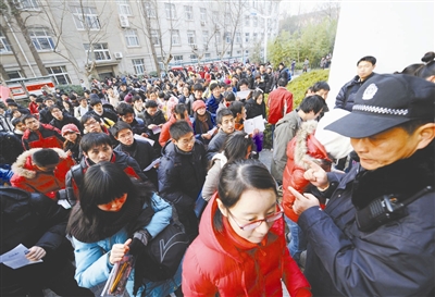 1月15日,考生在南京林业大学考点排队进场参加考试。