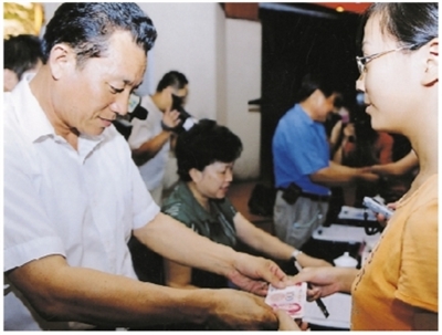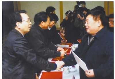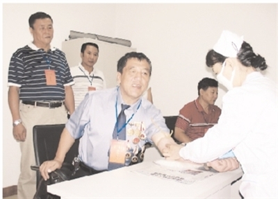 省劳模协会副会长、西安大明宫实业集团董事长席有良(右一)向困难劳模家庭捐助
