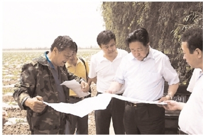 全国劳模、延长油田股份公司董事长张林森(右二),支助全国劳模、西瓜育种专家蒲元宝(左一)建立“劳模创新工作室”