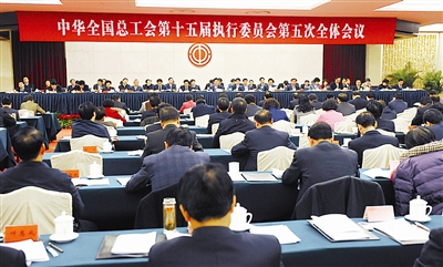 本报北京1月18日电 (记者王娇萍 郑莉 丁军杰)中华全国总工会第十五届执行委员会第五次全体会议今天上午在北京开幕,会议传达学习了中央书记处的重要指示精神。中共中央政治局委员、全国人大常委会副委员长、中华全国总工会主席王兆国在会上代表党中央发表重要讲话时强调,工会组织要认真学习贯彻党的十七届五中全会和中央经济工作会议精神,不断巩固围绕中心、服务大局的思想基础,把握面临的机遇和挑战,找准促进经济长期平稳较快发展和社会和谐稳定的切入点和着力点,团结动员广大职工为实现“十二五”规划目标任务作出新贡献。