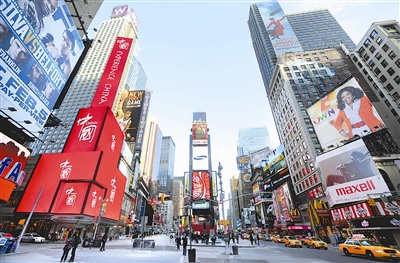 当日,《中国国家形象片——人物篇》开始在纽约时报广场大型电子显示屏上以每小时15次、每天共300次的频率播出。至2月14日,中国国家形象片共计将播放8400次。《中国国家形象片——人物篇》中包括了杨利伟、姚明等各领域优秀代表以及普通百姓,旨在向全世界展示立体的中国。新华社记者 申宏 摄