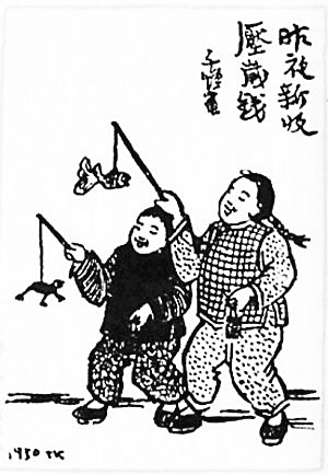 每年除夕,祖父都喜欢自己制作红包。他先是把积累起来的票子数到2元一份,摊出八份。然后,将每份人民币从大到小由下往上依次折叠在一起,对折,再对折。接着,找一张废纸包裹纸币,折叠成矩形。紧接着,用一张裁剪好的矩形红纸折卷起来,红纸相连两边用米汤糊上。最后,祖父用毛笔在我们的红包上写上各自的乳名。实际上,我很讨厌这土里土气的做法,不像外祖父直接到集市,大大方方花上几块钱买一沓做工精美的红包。