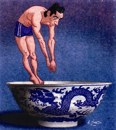 阿根廷画家创作的这幅“碗中跳”让读者浮想联翩——是表现主人公对华夏文化的探索与追求?还是运动员就地取“材”练练身手……
