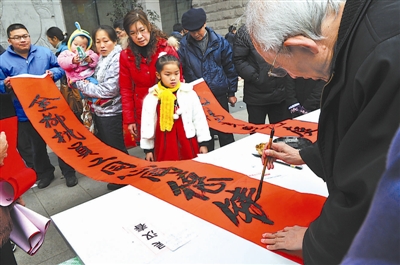 当日,广西柳州市举行2011年“文化惠民”百名书法家志愿服务赠送春联活动,众多书法家现场挥毫泼墨,书写一副副充满喜庆吉祥的春联,为市民送上新春的祝福。