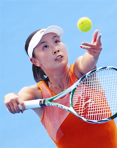 图为中国选手彭帅在比赛中发球。 新华社记者 孟永民 摄
