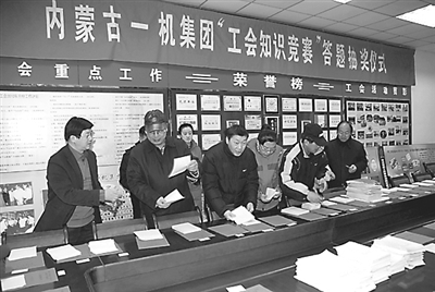 日前,内蒙古一机集团工会举行了“工会知识竞赛”答题抽奖活动,对20个优秀组织单位和270名幸运答题职工给予了奖励。据悉,该集团自2010年11月上旬开始,举行了“工会知识竞赛”,共有12920名职工踊跃参加了答题活动。本报特约通讯员 吴大刚 本报记者 张玺 摄