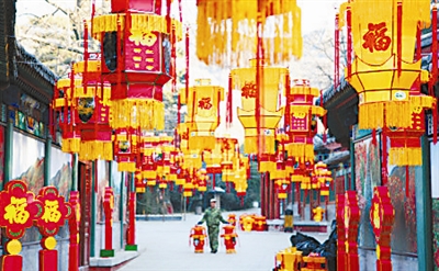 本报讯 日前,北京红螺寺景区员工已在春节前悬挂起“春节彩灯”。今年春节来临之际,北京市怀柔红螺寺利用景区高挂1500多盏各式彩灯喜迎春节,为春节期间中外游人营造了浓浓的喜庆和谐的旅游节日气氛。