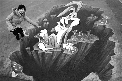 近日,10余名南京艺术学院学生在南京玄武湖公园的地面上创作了许多以兔子为主题的三维立体画,迎接兔年春节的到来。