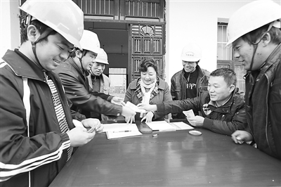 1月25日,中铁四局杭长客运专线五分部为准备回家过年的农民工发放工资。由于施工任务艰巨,工期紧,坚守在中铁四局杭长客运专线工程工地上的3228名农民工只有不到三分之一回家过年。
