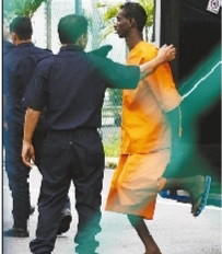 1月31日,在马来西亚吉隆坡的一所警察局,警察押送7名被马来西亚海军逮捕的索马里海盗。这些海盗将接受审讯。