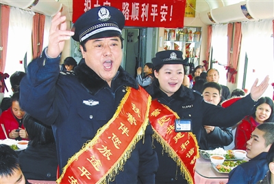 乐章 为烘托节日气氛,天津铁路公安民警给广大旅客创造一个更加舒心、和谐的乘车环境,派出文艺宣传队上车为旅客演出。杨爱军 摄