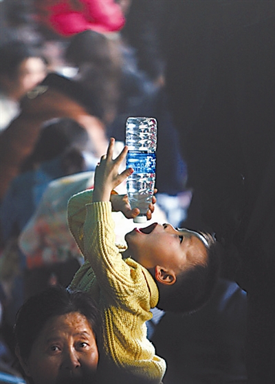喝水 1月19日,东莞火车站,一名小朋友仰起头喝水。春运旅途中的孩子们跟随父母奔波,壮观的“春运”对于他们而言或许只有回家的兴奋。陕军 摄