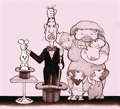 魔术师从帽子里变出兔子,魔术师娘能把魔术师从帽子里面拎出来……一看就是惧内的主儿。