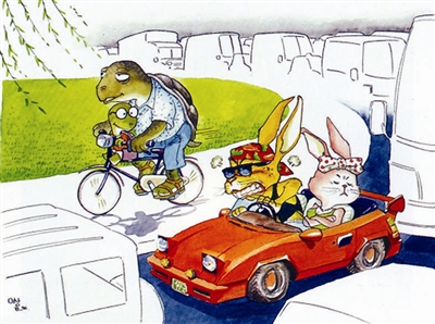 赛车塞得一塌糊涂,骑单车的乌龟在车流里潇洒穿行,再一次把开跑车的兔子甩在后面……