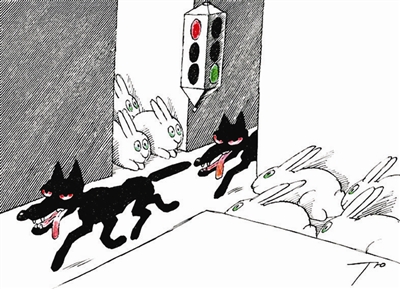 都兔年了,野狼还无视红灯,横冲直撞,有什么办法啊,谁让咱是兔子呢,忍气吞声吧……