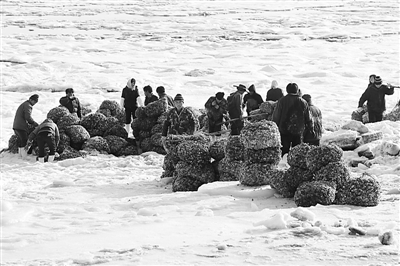 辽宁省连庄河市黑岛镇黄贵城村渔民在收获牡蛎。王大斌 摄