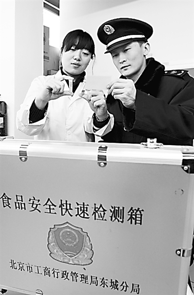 为了保障节日期间的食品安全,北京市工商局东城分局加强对超市、农副产品市场等经营单位出售的食品的进货渠道和索证索票的检查,同时加强对所出售的粮、油、盐、蔬菜和调味品等食品进行快速检测,确保出售的食品安全。