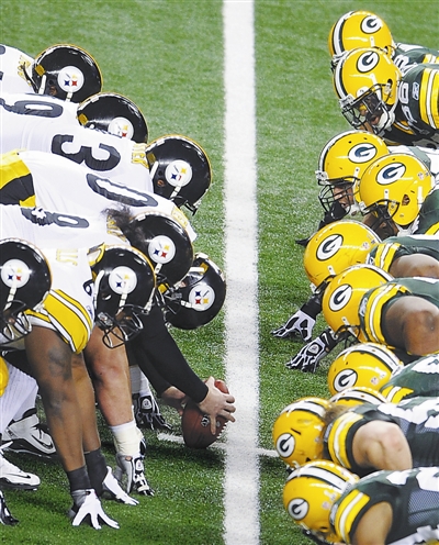 2月6日,第45届美式足球NFL“超级碗”比赛在美国德克萨斯州达拉斯阿灵顿市的牛仔体育场举行,由美联冠军队匹兹堡钢人队对阵国联冠军队绿湾包装工队,图为开球时的画面。最终,后者以31比25获胜。