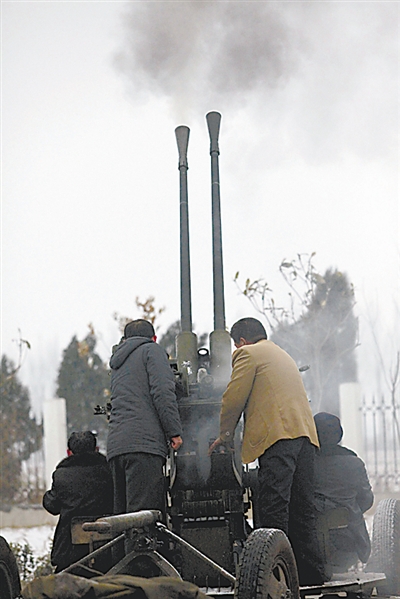 图为2月9日,气象工作者在河南省禹州市范坡乡集约化乡镇气象站实施人工增雪作业。