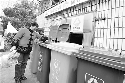 孙明国是北京一小区的居民,每天早上,他都会响应社区的号召,把家里的垃圾进行分类后,分别投放到小区内分别写有“可回收物”和“厨余垃圾”字样儿的两个垃圾桶中。