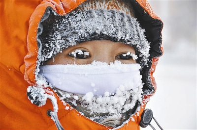 2月10日,内蒙古呼伦贝尔兔年首场寒潮使最低气温降至-41.3℃。图为牙克石市街头清理积雪的环卫工人,其眼睫毛、口罩、帽子上挂满白霜。 余昌军 摄