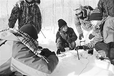 由于路途坎坷,各个小分队每天的午饭只能在山上解决。零下27摄氏度的低温让随身携带的包子很难保温,矿泉水更是冻得邦邦硬的,一周时间成功清除猎套304个