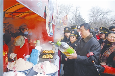 大年初二,在北京市卫生局毛羽副局长带领下,由市食品安全办、市工商局、东城区卫生监督所等部门组成的联合检查组,共同检查了第28届龙潭庙会的餐饮安全。