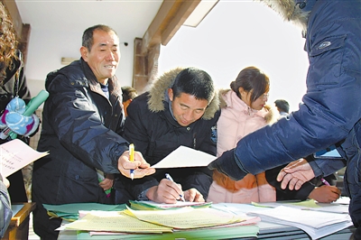 2月12日,人们在河北邢台“72小时就业中心”前填写就业登记表。“只要有就业意向和就业能力,只要不挑不拣,72小时保证就业”。今年2月8日,河北省邢台市率先在全省设立“72小时就业中心”服务机构,帮助一些学历不高、工作经验不多的人们解决就业问题,免费为社会各层次失业人员、应往届毕业生和就业困难人员提供72小时就业服务。 岳立中 摄