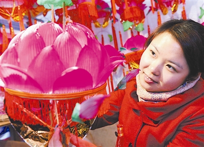 2月15日,艺人在赶制元宵花灯。