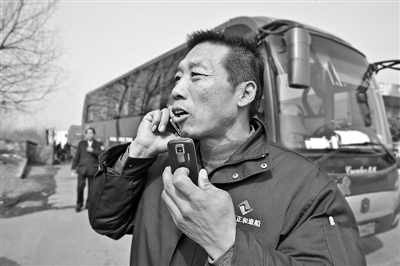 2月13日,河南省南阳市。浙江正和造船厂的召集人庞天成正忙着告诉同事们集中上车的地点。为妥善解决春运期间企业职工返厂交通难题,正和造船厂一夜驱车1200多公里赶到南阳,接回147名员工返厂。 陈炳群 摄
