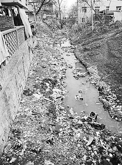 2月12日,安徽省含山县林头镇10公里左右的河道内堆满了垃圾。据了解,主要原因是多数居民将生活垃圾倒在这条本来是清澈河水的泄洪沟里,日积月累,泄洪沟已经成了一条垃圾沟。李远波 摄