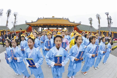 当日,一所农民工子弟学校——广西南宁市扶壮学校2600多名师生在新迁建落成的南宁孔庙举行新学期开学典礼。通过开展祭孔大典,诵读《弟子规》《大学》等中华经典,让同学们在弘扬中华传统文化中受到熏陶和教育。