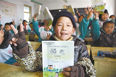 2月21日,山东省临沭县二小的外来务工人员子女郭礼浩领到了免费循环教科书。为减轻外来务工人员子女上学负担,临沭县对全县范围内就读的外来务工人员子女提供免费循环使用教科书,受到外来务工人员的欢迎。
