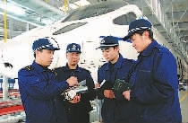 沈阳车辆段注重加强职工岗位技能培训,积极采用踏面诊断、空心轴探伤、不落轮镟等先进微控设备,确保动车组列车一路安全前行。图为检修“技术状元”向职工传授检修技术。(毕昆 摄)