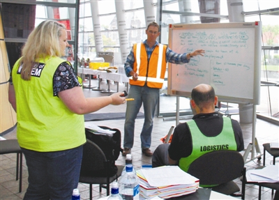 2月23日,在新西兰南岛城市克赖斯特彻奇,工作人员在地震灾后应急中心紧张工作。目前克赖斯特彻奇地震灾后救援工作正在有序进行。新华社记者 黄兴伟 摄