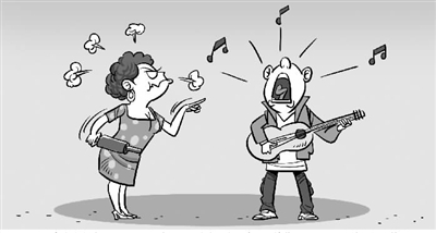 女孩喜欢弹吉他的男人,因为他们创造诗意;女人喜欢弹棉花的男人,因为他们创造效益。漫画 :赵春青