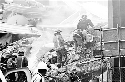 2月22日,在新西兰南岛克赖斯特彻奇,救援人员在一座楼房废墟中搜寻被困人员。