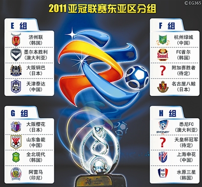 经过分组抽签,中超四队的亚冠分组为:山东鲁能所在的G组中有日本大阪樱花、韩国全北现代和印尼阿雷马;H组的上海申花则遭遇韩国水原三星、日本鹿岛鹿角和澳大利亚悉尼FC;天津泰达被分入E组,对手是日本大阪钢巴、澳大利亚墨尔本胜利与韩国济州联队;杭州绿城则在F组,同组的有韩国首尔FC,日本名古屋鲸八和阿联酋阿尔艾因。