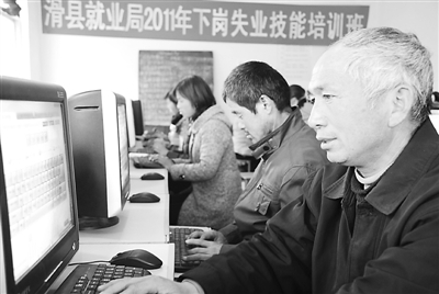 图为2月23日,河南省滑县失业人员刘建起正在免费接受计算机技能培训。河南省滑县就业局本着免费自愿原则,对全县下岗失业人员进行计算机等技能培训。(张波 王俊光/摄)