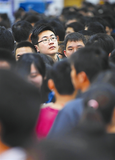3月1日,众多求职者在招聘会上寻找合适的工作。当日,2011年春季大型人才招聘会在海口市会展中心举行。