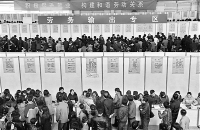 3月1日,由陕西省总工会举办的2011年全省工会促进就业再就业大型免费招聘洽谈会开幕,来自上海、南京、杭州等长江三角地区41家用工单位,以及本省450家用工单位,分别提供3500个和8000个工作岗位,约2.5万名下岗失业人员和农民工及大学毕业生前来应聘洽谈。 袁景智 摄