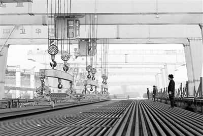 沈阳工务机械段沈阳南焊轨基地是一座高标准、现代化的焊轨基地。该基地采用100/500米长轨吊装同步控制技术、辊道线变频控制技术、斜齿轮减速机替代原行星摆线减速机技术等多项新技术、新工艺,日最高生产500米长轨12公里。自2008年9月17日正式投产以来,已先后为武广、郑西、京沪、哈大等高铁提供优质长轨2137公里。 立纯 彦山 春怀 摄