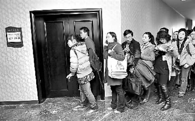 3月4日是全国政协十一届四次会议分组讨论的第一天。由于本次会议热点多,今年又是“十二五”规划的第一年,每次两会最吸引记者的全国政协经济界的分组讨论会场这次被众多记者们挤得“爆棚”。为此,会场工作人员只能请记者们分批次地进入会场采访。记者们只好在会场门口耐心地排起了长队。本报记者 张宪摄