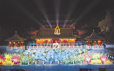 五年来,威海经济技术开发区现代服务业由无到有、由小到大,现代商贸等“五大中心”蔚为壮观。图为4A级华夏城旅游风景区内“神游华夏”演出现场。
