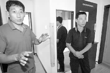 2010年8月31日,天津市环卫工刘玉栋(左)在筹划自己新家的布局。当年7月,刘玉栋等7位农民工劳模拿到了天津市政府配租的廉租房钥匙,并获得城市户口。本报记者 杨登峰 摄