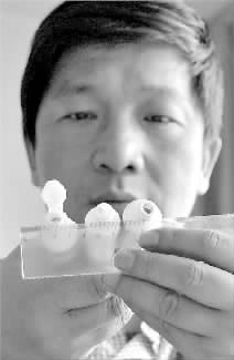 这是陈海啸在测量3只不同品牌的牙膏口径(3月12日摄)。