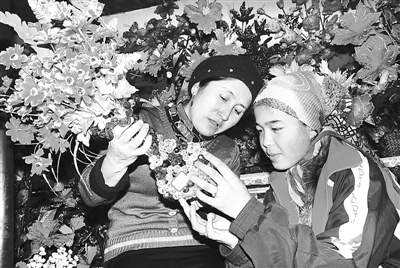 图为新疆伊宁县青年农场农四队维族妇女买迪娜·阿不力克木在自已的干花店里给一女青年传授干花制作的手艺。买迪娜·阿不力克木2006年到乌鲁木齐学习干花制作技术,2008年开干花店收学徒,带动30多名学徒走上了创业之路。钟改清 摄